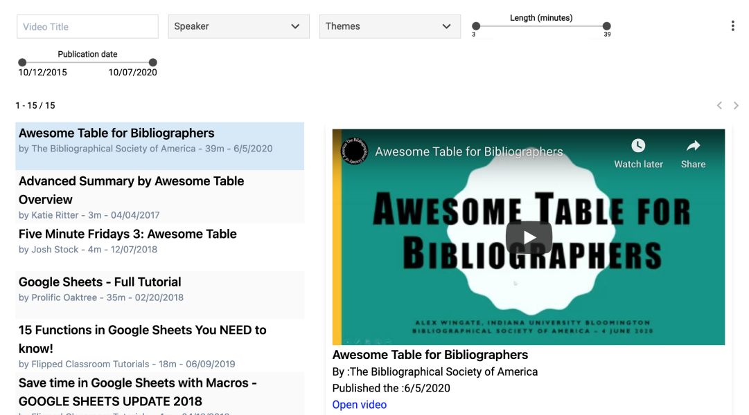 Make the playlist filterableWant to make your playlist more manageable? Add filters to the Awesome Table app to make finding the right video easy.